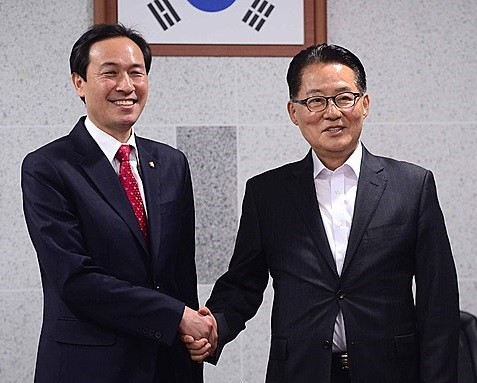 그는 이후 우 원내대표와 공식 상견례 자리에서도 비공개 없이 10분만에 환담을 끝내는 등 냉랭한 기류를 나타냈다. 박 원내대표는 앞서 정진석 새누리당 원내대표와는 만나자마자 포옹으로 친밀함을 표시하는 등 30분간 면담했다.