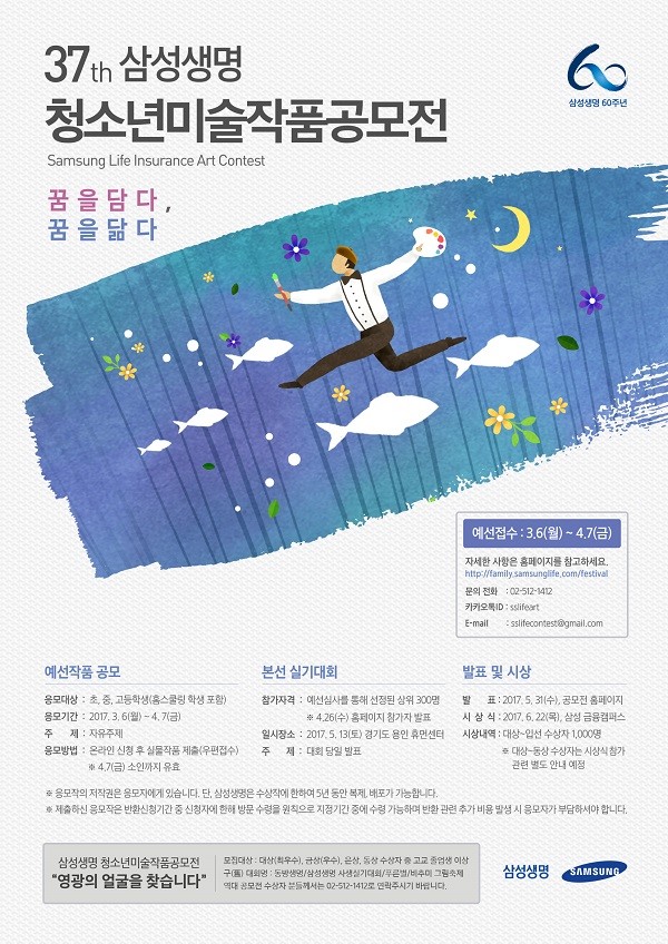 [일요주간=홍성완 기자] 삼성생명은 전국 초·중·고등학생을 대상으로 ‘제37회 청소년 미술 작품 공모전’을 개최한다고 6일 밝혔다.