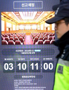 | ▲ 서울 종로구 헌법재판소 앞 게시판에 박근혜 대통령 탄핵심판 선고일이 안내되고 있다. 박근혜 대통령 탄핵심판 선고는 10일 오전 11시에 진행된다 | ||
