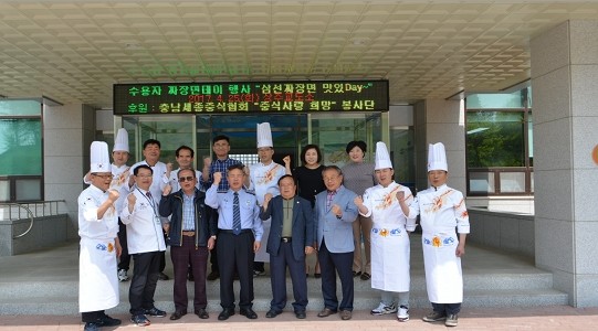 이날 행사는 대전지방교정청 교정연합회 전 수석부회장 김영인 교정위원, 전 청와대 요리사 이정삼 청주교도소 교정위원, (사)한국조리사협회 대전·충남·세종지회 ‘중식사랑 희망’ 봉사단 회원의 후원을 받아 삼선짜장면 800인분을 봉사단 회원 및 소장과 직원들이 직접 한 그릇씩 담아 바나나와 함께 수용자들에게 전달했다.
