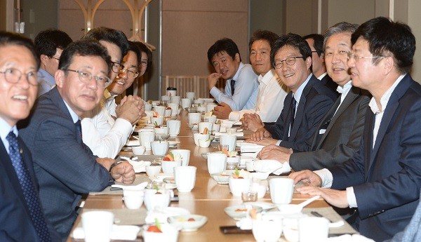 | ▲ 지난 11일 오후 서울 여의도의 한 식당에서 바른정당 주호영 대표 권한대행 겸 원내대표, 정병국 전 대표, 김무성 고문, 이종구 정책위의장, 유승민 의원 등이 만찬을 하고 있다. | ||