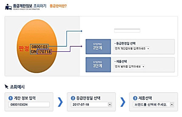 계란 조회서비스는 축산물품질평가원 홈페이지(www.ekape.or.kr)에 공인인증서 등을 이용해 로그인 한 뒤 등급계정정보 조회 서비스에 들어가, 달걀 껍질에 적힌 계란 정보와 등급판정일 등 9자리의 정보를 기입하면 된다. 해당 서비스를 통해 구매한 계란의 생산자와 집하장, 브랜드 정보 등을 자세히 알 수 있다.