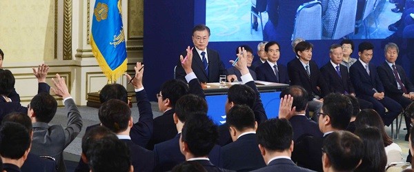 한편 이날 기자회견은 오전 11시께 청와대 영빈관에서 출입기자 250여명과 함께 이루어졌다. 기자회견은 아무런 시나리오 없이 1시간 동안 기자들의 질문에 문 대통령이 자유롭게 답하는 프리스타일 형태로 이루어졌다.