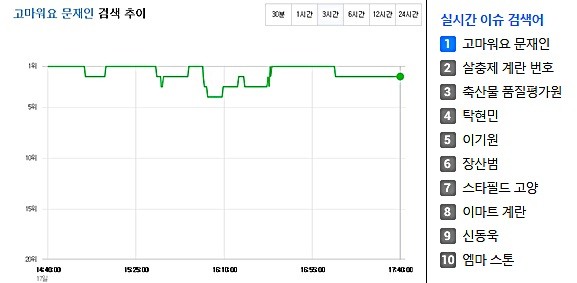 [일요주간=김청현 기자] 문재인 대통령이 취임 100일을 맞이한 17일, 주요 포털사이트에서는 ‘고마워요 문재인’이라는 문구가 장시간 실시간 검색어(실검) 1위를 차지했다.