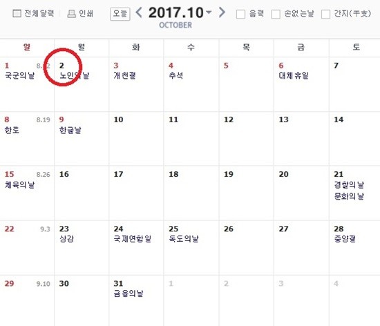 10월 2일 월요일은 일요일인 1일과 공휴일인 개천절(3)일 사이에 낀 평일이다. 또 4일부터는 추석연휴가 시작된다. 이에 2일을 임시공휴일로 지정할 경우, 9월 30일 토요일부터 그 다음주 월요일 한글날(9일)까지 최장 10일에 이르는 황금연휴를 맞게 된다.