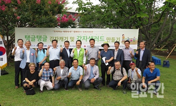 ▲ 신동헌 대표가 국회 생생텃밭에서 밭을 직접 일구고 있다.