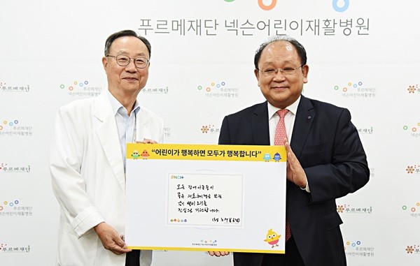 [일요주간=노세중 기자] 효성이 25일 푸르메재단 넥슨어린이재활병원에 장애인의 무료 치과 방문진료를 위한 치과버스를 기증했다. 효성은 진료 소모품 구입 등에 사용되는 금액 1,500만원을 더해 총 1억원 상당의 버스와 지원금을 병원 측에 전달했다.