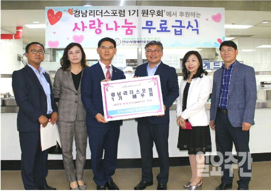 이번 나눔은 민족명절 한가위를 맞이하여 지역 장애인들에게 이웃사랑을 실천하고자 경남 리더스 포럼 1기원우회 회원들이 정성들여 마련한 기금으로 500인분의 무료급식비를 지원해 장애인 이용자들에게 따뜻한 온정을 전했다.