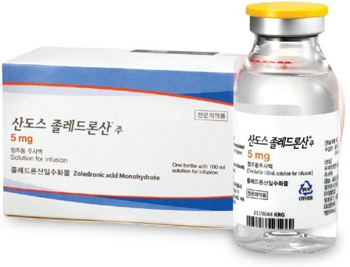 ‘산도스졸레드론산 주’는 대표적 골다공증 치료 제제인 비스포스포네이트(BP) 계열의 골다공증 치료 주사제로 1년에 1회 투약한다. 폐경 후 여성의 골다공증 치료 및 예방, 남성의 골다공증 치료, 저충격 고관절 골절 후 새로운 골절예방 등 BP 제제 중 가장 많은 적응증을 가지고 있다.