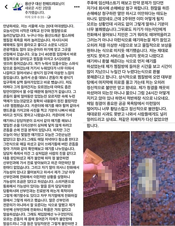 지난 31일 페이스북 ‘용산구 대신 전해드려요’ 페이지에는 “드래곤힐스파에 놀러갔다가 생식기에 콘돔이 끼여있었다’는 주장의 글이 올라왔다.