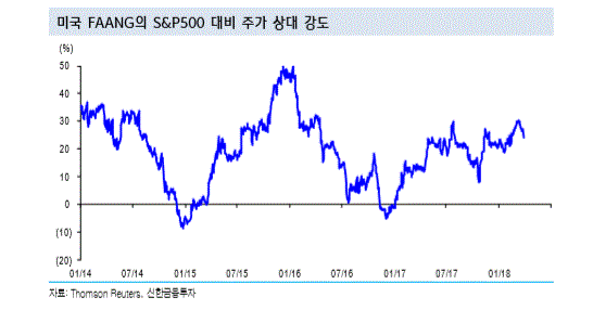 노동길 연구원은 “밤사이 미국 기술주가 추가 하락했다. 스캔들 중심에 있는 페이스북이 소폭 반등 했으나 나머지 FAANG(페이스북, 아마존, 애플, 넷플릭스, 구글) 주식들이 약세였다”며 “최근 미국 기술주 약세의 배경에는 데이터 소유권에 대한 투자자들의 우려도 깔려있다. 미국 사법 당국이 데이터 수사를 용이하게 할 수 있는 법안이 지난주 미국 의회를 통과했기 때문이다”고 전했다.