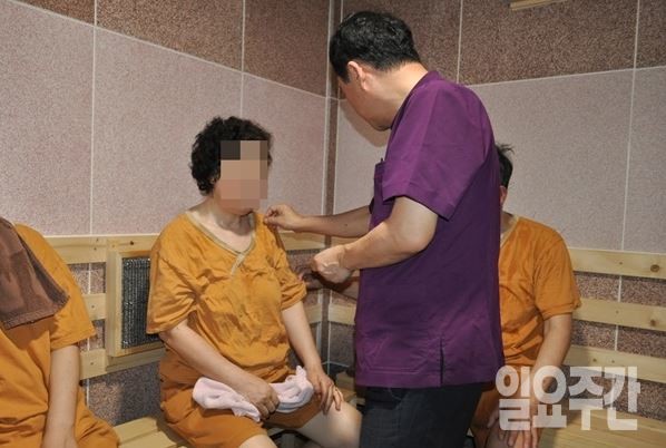 김선국 원장이 양자치료실에서 환자에게 침 치료를 행하고 있다.