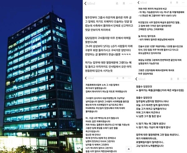 이어 이 관계자는 “블라인드에서 말한 것과 달리 B씨는 임원도 아니고 회장님의 영향력을 가진 분도 아닌 일반 부장급 직원”이라면서 “사내에 부장급만 200명 정도가 되기 때문에 그 의혹은 어불성설”이라고 덧붙였다.