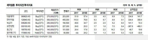 이어 “2분기 어닝 시즌 상위제약사 실적 모멘텀 부재로 R&D모멘텀을 보유한 대웅제약과 한미약품에 투자의견 '긍정적(Positive)을 유지한다”고 덧붙였다.