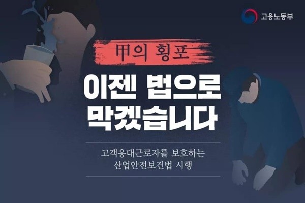 이번에 고용노동부가 ‘갑의 횡포’를 이젠 법으로 뿌리를 뽑겠다며, 고객응대근로자를 보호하는 ‘산업안전보건법’을 지난 10월 18일부터 시행에 들어갔다.