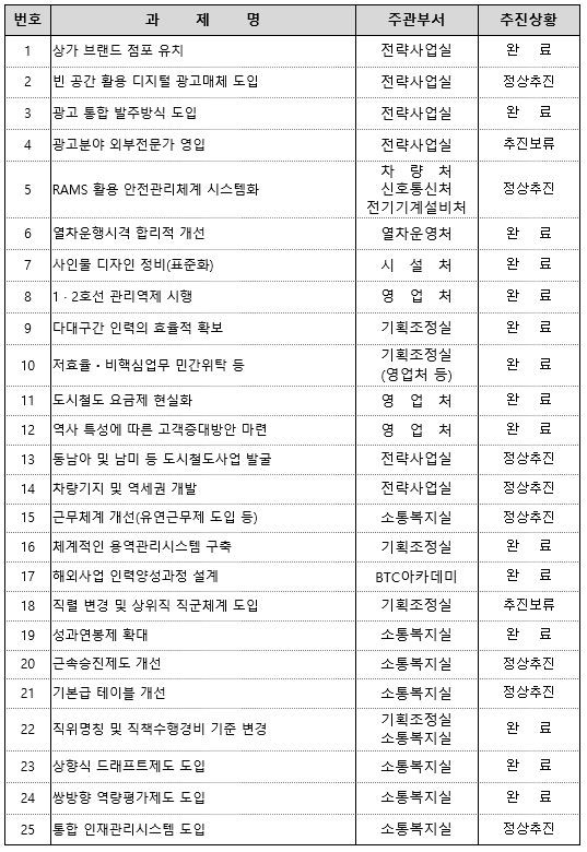 <총 25개 추진과제 中 15개 과제 완료, 8개 과제 정상추진, 2개 과제 추진보류>
