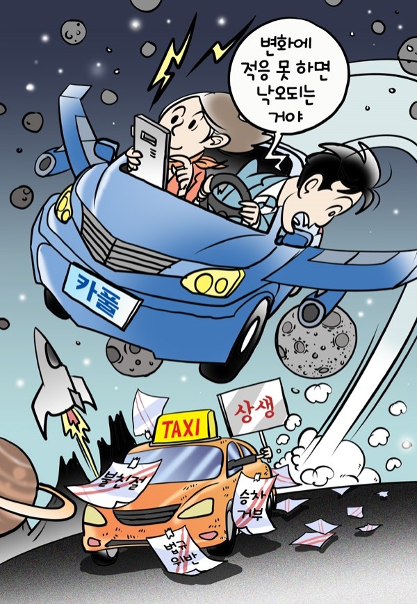 [주간 만평] 카풀 Vs 택시 갈등 심화...변화와 낙오의 기로